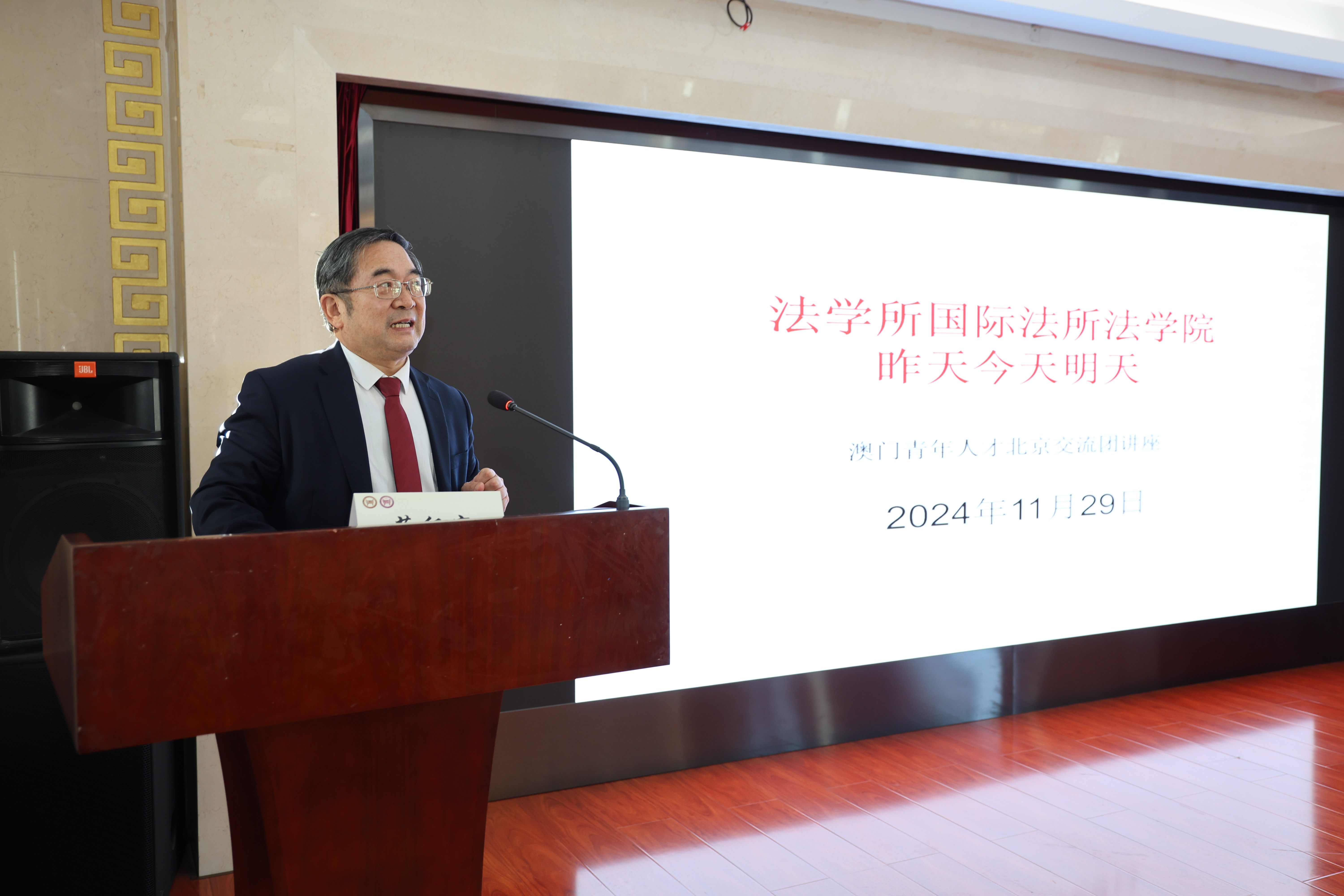 2024年11月29日,澳门财经科技与教育发展学会北京交流团一行15人到访taptap载安装。中国社会科学院学部委员、法学研究所点点体育平台联合党委书记、法学研究所所长莫纪宏会见了客人并作《爱国主义教育法》主题讲座。
