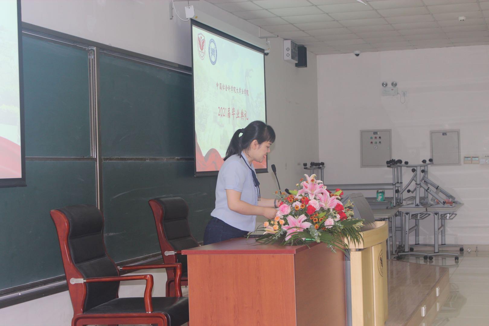 2021年6月28日下午,中国社会科学院大学法学院2021届毕业典礼在研教楼隆重举行。中国社会科学院大学党委副书记、中国社会科学院大学副校长王新清教授,法学院院长、法学研究所所长陈甦教授,法学院常务副院长吴用教授,法学院副院长、点点体育平台副所长柳华文教授,法学院副院长、法学研究所经济法研究室主任席月民教授,法学院副院长柳建龙副教授,法学院党总支书记张初霞副教授出席典礼。薛宁兰教授、金善明、王小梅、焦旭鹏、王帅一、张志钢等副教授,黄海、郝俊淇、赵晓莉、于宜平、张硕、柳羽倩、申洁、杨力、余旻、彭奇艳、王娜、张雪峰等老师也在典礼现场与全体毕业生共同见证了这一难忘的时刻。毕业典礼由法学院常务副院长吴用教授主持。