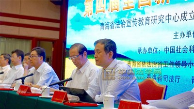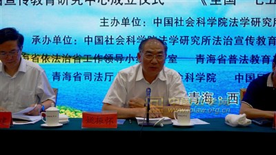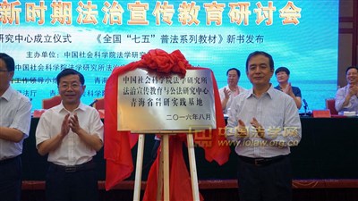 中国法学会副会长张苏军与青海省政府副秘书长马骥共同为青海省法治宣传教育研究中心揭牌。法学所陈甦书记与青海省社科院副院长苏海红共同为中国社会科学院法学所法治宣传教育与公法研究中心青海科研实践基地揭牌。