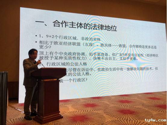 第一,关于区域合作的法律依据,基本法缺乏类似美国的州际商业条款之类的区域贸易条款,没有明确的区域合作法律依据。中央协调地方这是当然的权利,可以授权亦可收回授权。但对于特别行政区是不一样的,特别行政区自治应该是人格,是自治者。