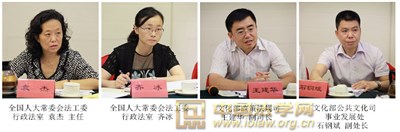 全国人大常委会法工委行政法室袁杰主任和齐冰同志,文化部政策法规司王建华副司长和公共文化司事业发展处石钢斌副处长参加了研讨会。研讨会开始后,文化部政策法规司王建华副司长介绍了《公共图书馆法(草案)》的立法背景和主要考虑。