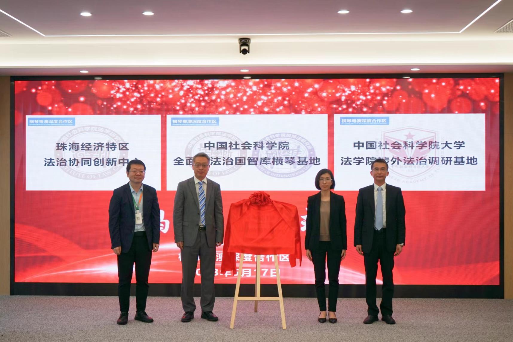 5月17日,“珠海经济特区法治协同创新中心”“中国社会科学院全面依法治国智库横琴基地”和“中国社会科学院大学法学院涉外法治调研基地”揭牌仪式在横琴粤澳深度合作区(下称合作区)琴澳国际法务集聚区举行。