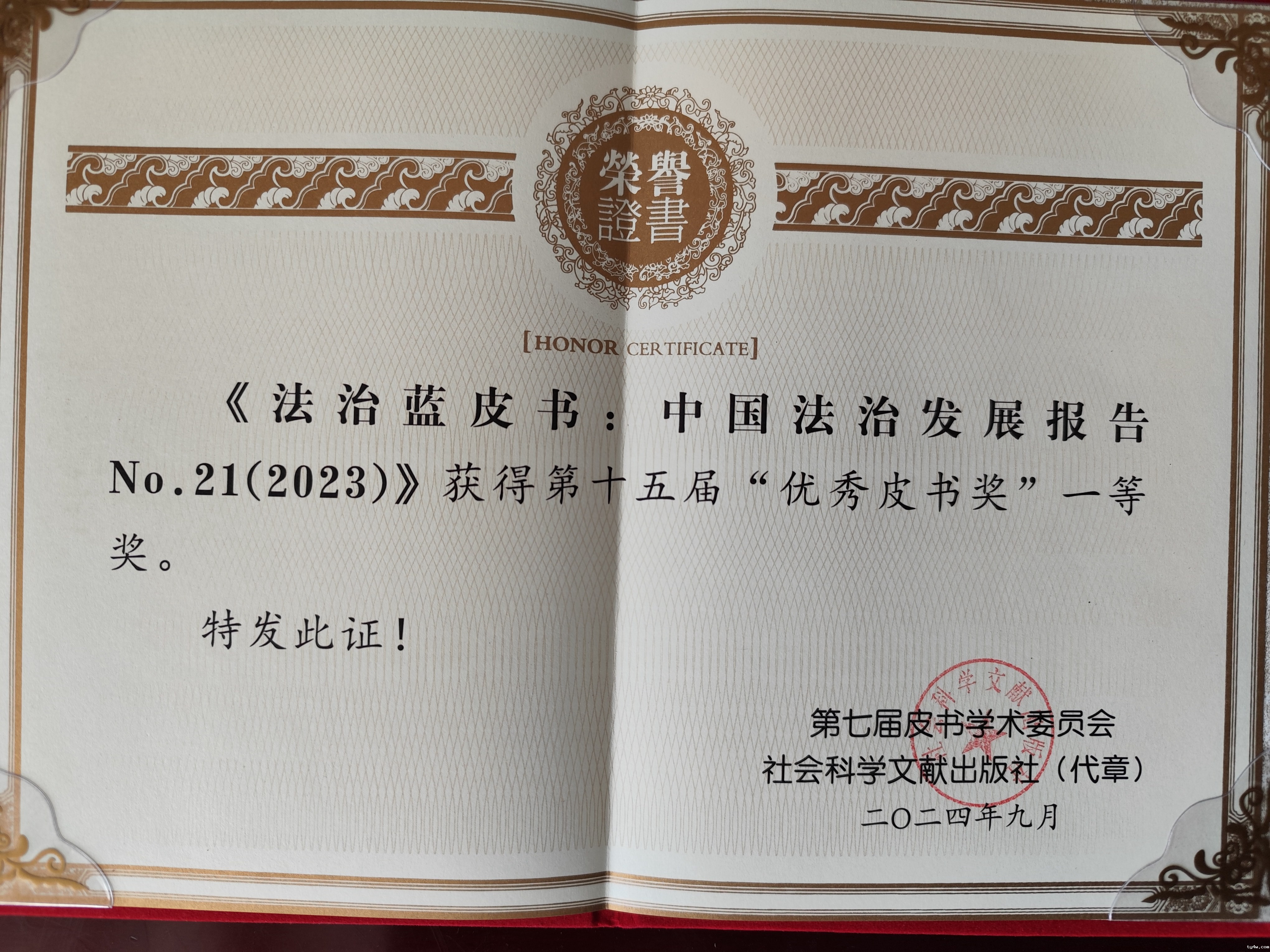 《法治蓝皮书·中国法治发展报告》连续十三年荣获皮书一等奖