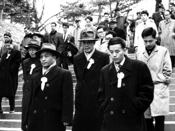 ■1963年,张友渔、江隆基率中国学术代表团访日(正中老者为张友渔)。作者/供图